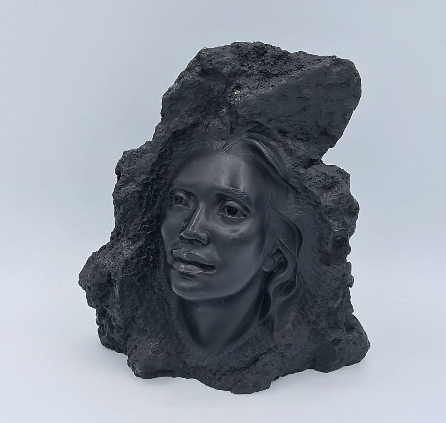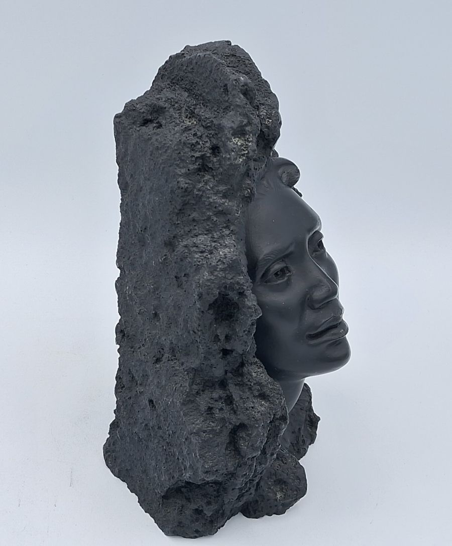 Authentic vintage black lava art made from natural lava stone.