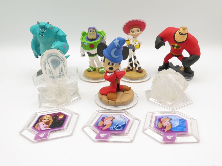 A collection of 15 Disney Infinity characters and 3 power discs. Including characters from popular Disney productions.