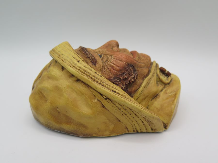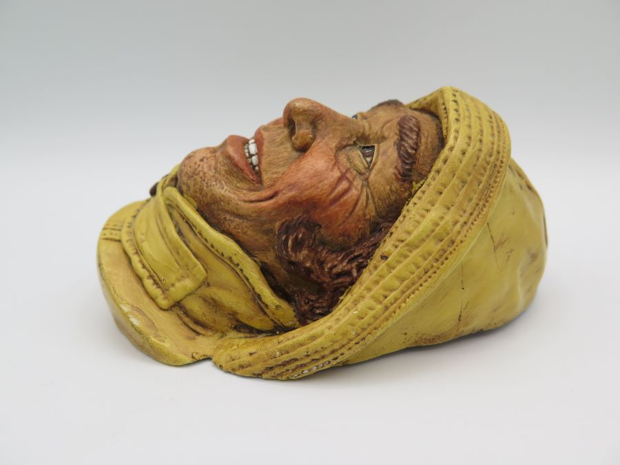 A plaster/chalkware bust of a fisherman titled "Sou' Wester". It measures 5 inches long.