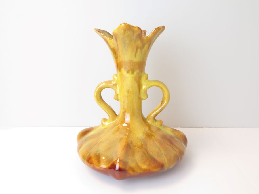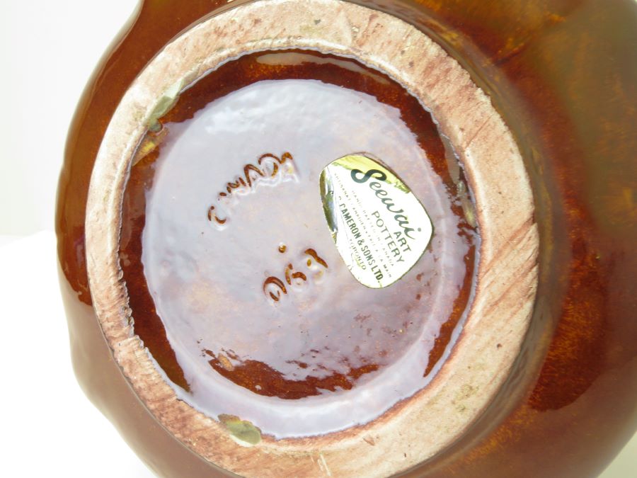 A Seewai art pottery vase. Handcrafted in Canada and numbered, 063. It is 8 1/2 inches wide and 10 inches tall.